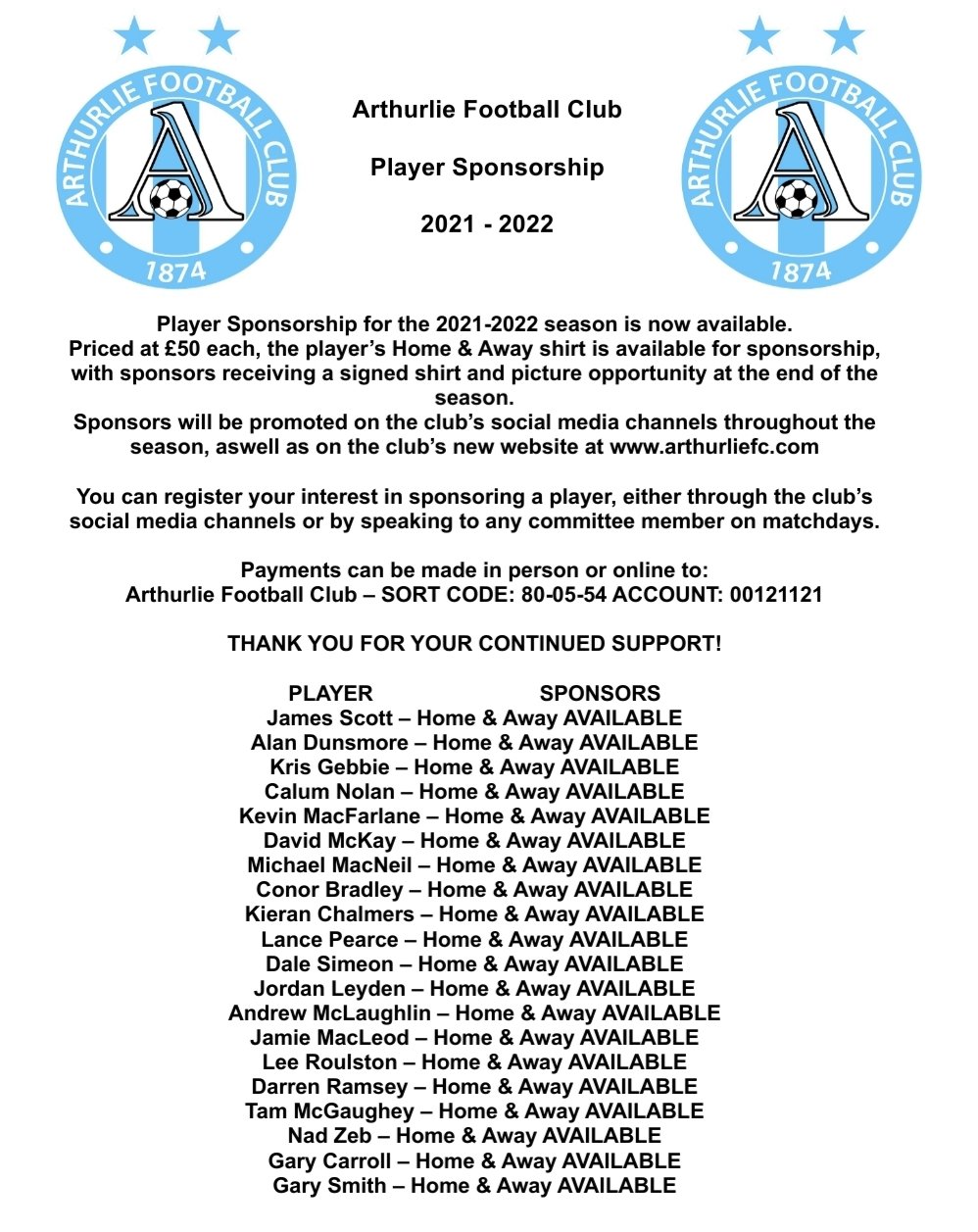 Player sponsorship for the 2021-2022 season is now available at £50 each for home & away shirts.
