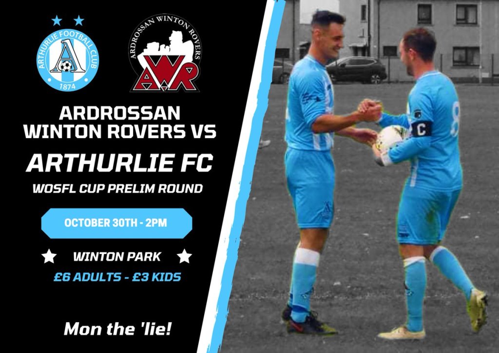 This Saturday (October 30th) The ‘Lie are in West of Scotland League Cup action as they travel to Winton Park (KA22 8JG) to take on Ardrossan Winton Rovers.