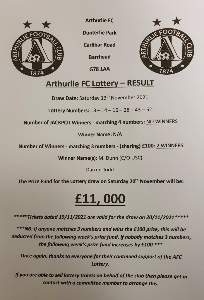 Please note that some of next week’s tickets are dated 19/11/2021 – these will be valid for the draw on Saturday 20th November.