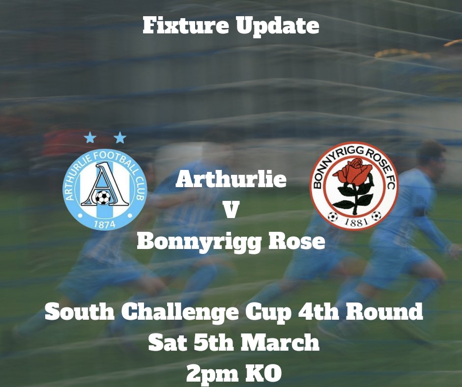 Our postponed game v Bonnyrigg Rose in the South Challenge Cup Fourth Round will now go ahead on Saturday 5th March with a 2pm Kick off.