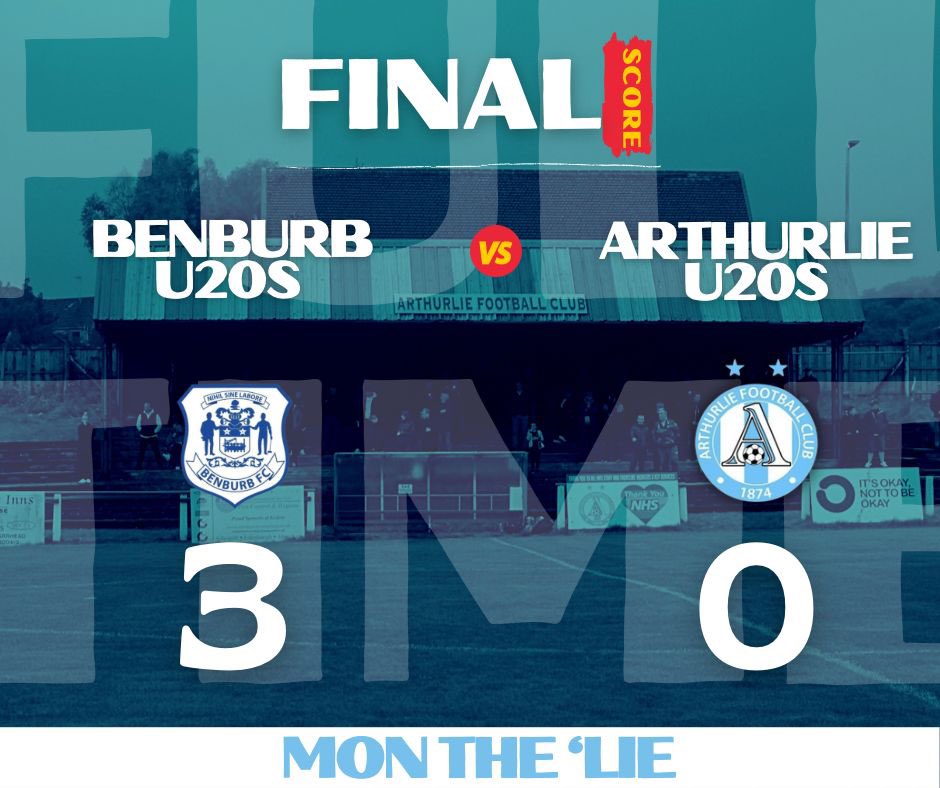 UNDER-20S RESULT: BENBURB 3-0 ARTHURLIE Share this: Click to share on X (Opens in new window) X Click to share on Facebook (Opens in new window) Facebook Like Loading... Related