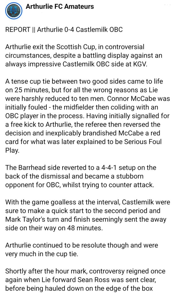 MATCH REPORT: ARTHURLIE AMS 0-4 CASTLEMILK Share this: Click to share on X (Opens in new window) X Click to share on Facebook (Opens in new window) Facebook Like Loading... Related