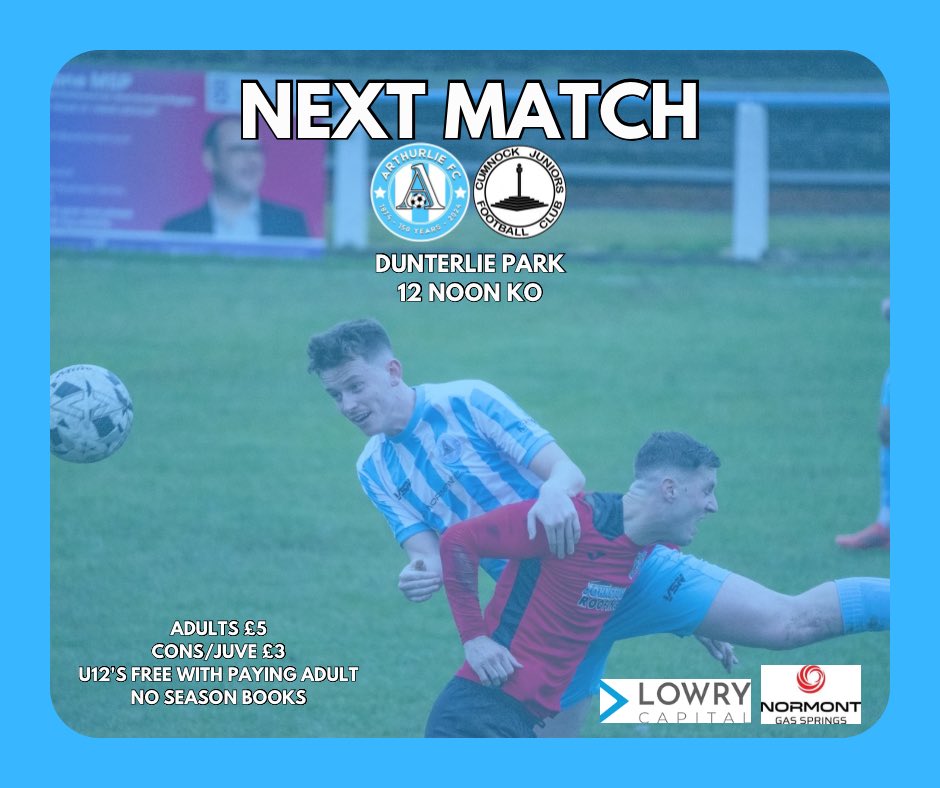 We will now play Cumnock Juniors at Dunterlie with kick off at 12 noon.