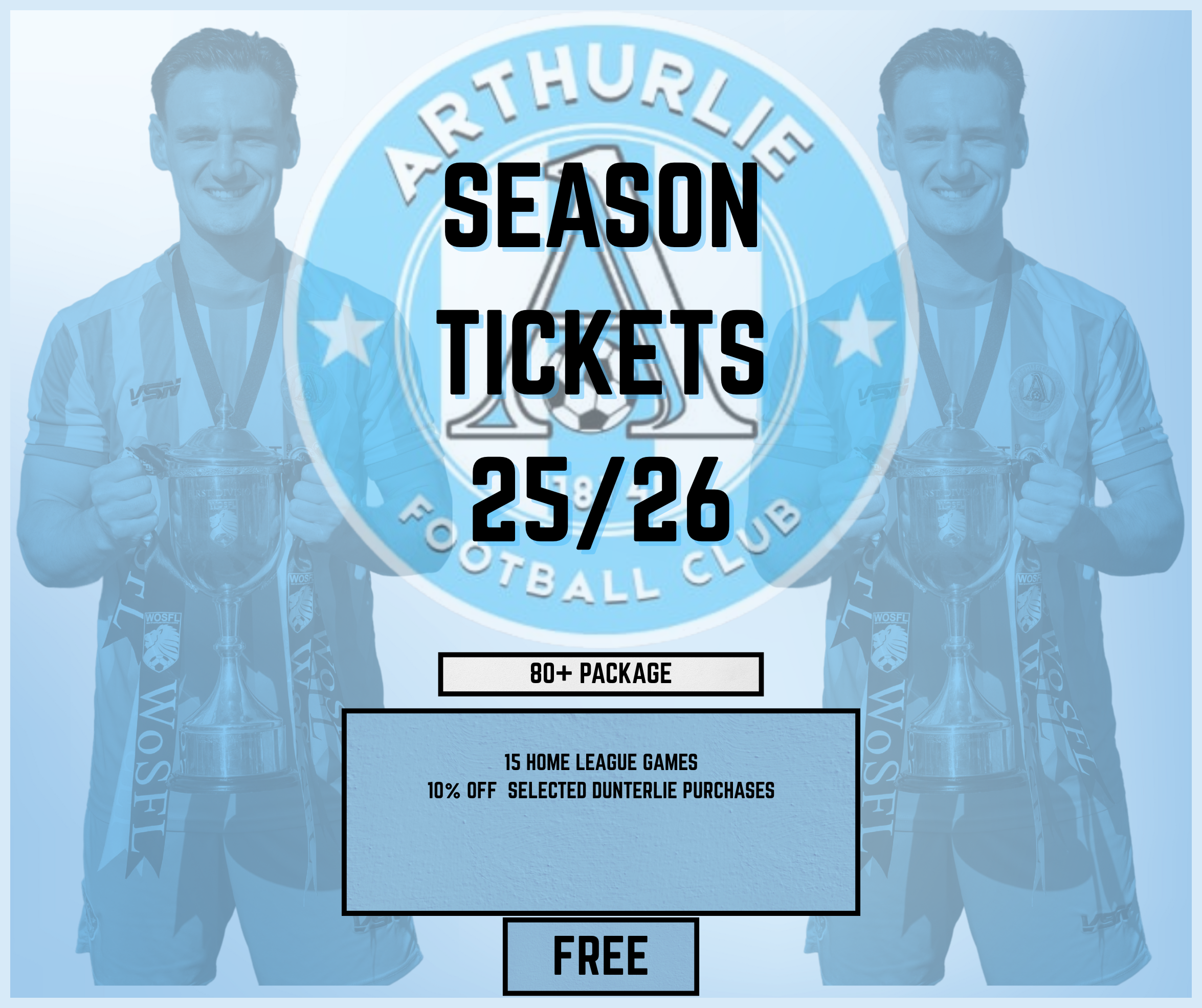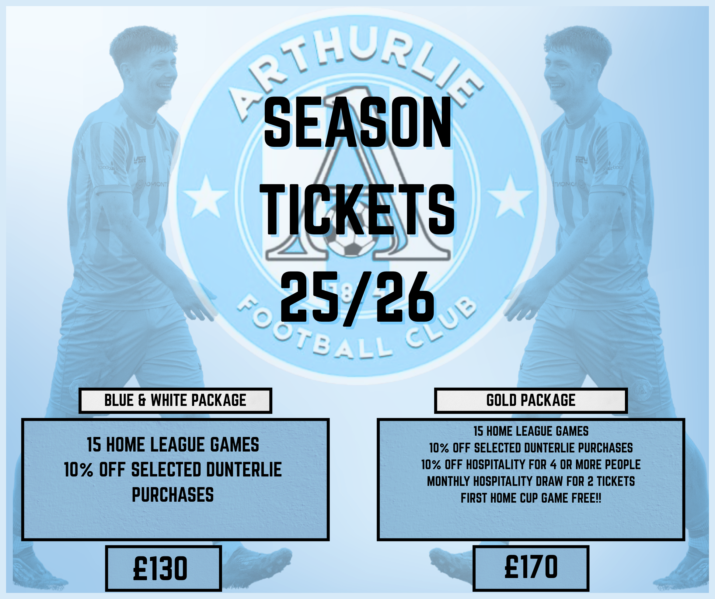 Tickets can be purchased from Dunterlie on Saturday morning, Tuesday night and thursday nights. Alternatively via bank transfer to the following account: Arthurlie football club,Sort code:80-05-54 Account:00121121 Ref: sntct