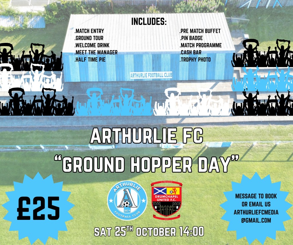Saturday 25th October 2025 we are looking for as many ground hoppers to come along for a very exclusive visit to our park and take in our game against Drumchapel.