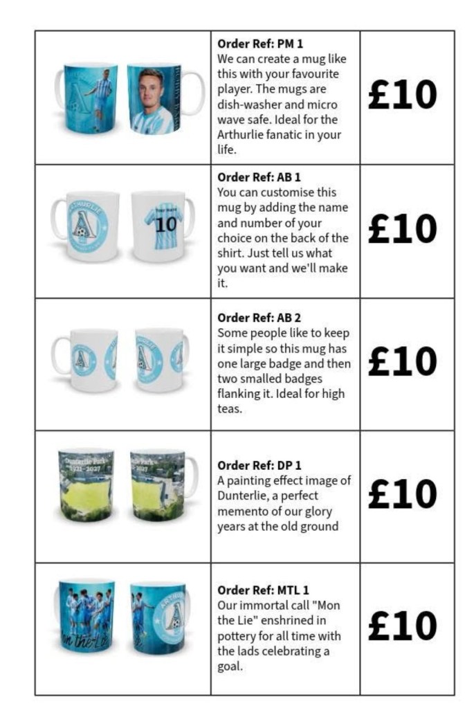 email arthurliefcmedia@gmail.com with the above details and confirm that payment has been sent to the club account which is Arthurlie Football Club Sort code:80-05-54 Account:00121121 Ref: Your Name Merch - We’ll notify customers of times when products can be collected from the ground.