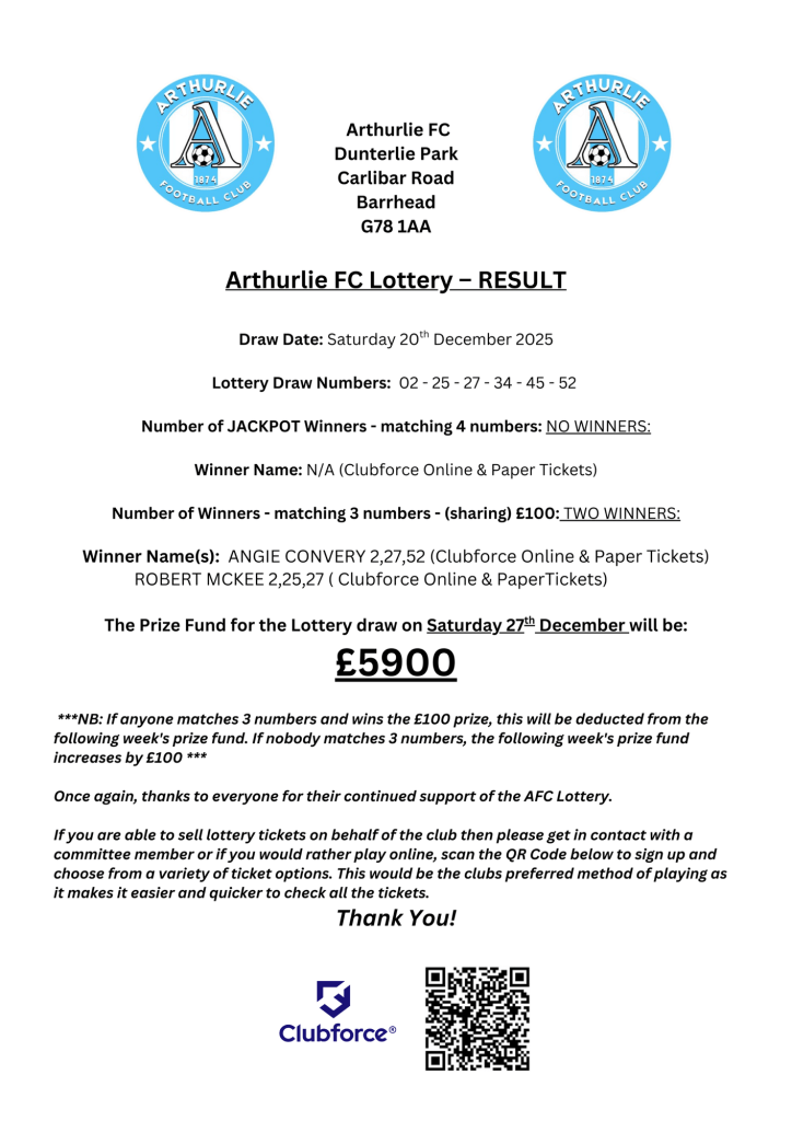 Play along online here: https://arthurliefc.clubforce.com/products/lotto/arthurlie-football-club-lotto